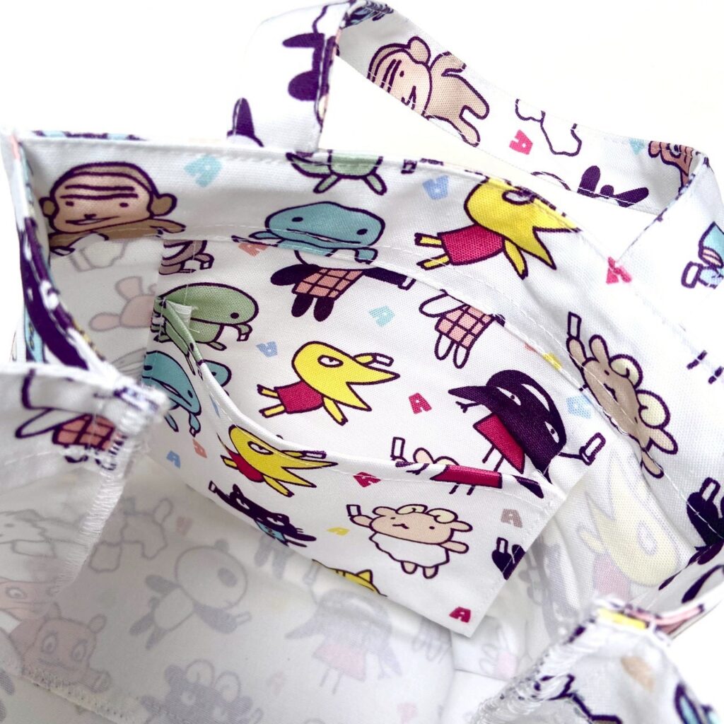 大きさ:約20cm×20cm×まち11.5cm もち手26.5cm、内ポケット大きさ:約13.5×9.5センチ